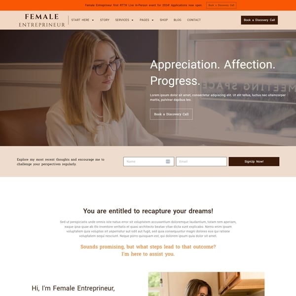 Life Coaching Female Entrepreneur Elementor Template Kit